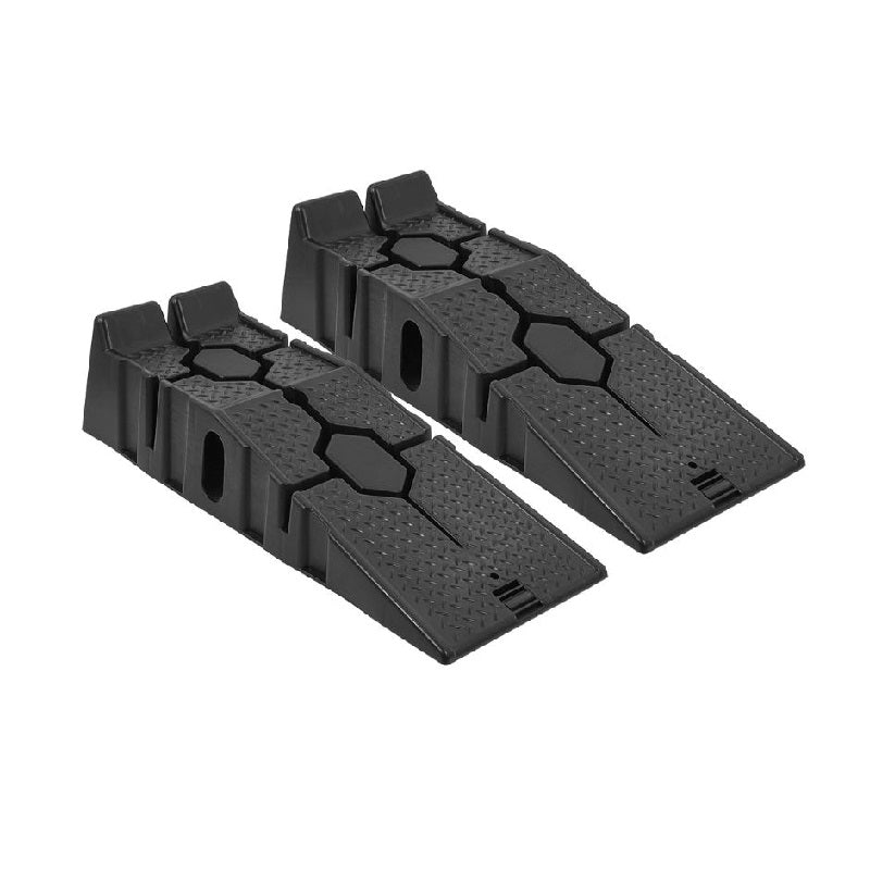 Universalrampen für Pkw. Sanfte Auffahrt. Hohe Sicherheitsschwelle, die das Auto vor dem Vorwärtsrollen schützt. Spezielle Rillen im Material erhöhen die Haftung.