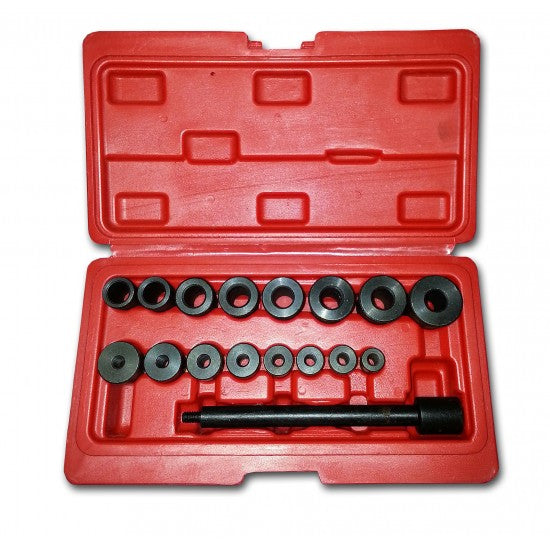 Kupplungszentriersatz 17-teilig KB04227. Das Set beinhaltet: - 1x Stift, - 16 x verschiedene Adapter, - 8 x Zentrierhülsen: 1. 15,5 x 14,2 x 26,6 mm. 2,16,7 x 15,4 x 27,0 mm. 3,19,0 x 17,5 x 28,0 mm. 4,20,0 x 18,6 x 27,5 mm. 5. 21,4 x 20,0 x 27,4 mm. 6. 23,0 x 21,6 x 27,5 mm. 7. 23,5 x 22,0 x 27,5 mm. 8,26,6 x 24,2 x 27,5 mm. - 8 x Endhülsen: 1. 12,6 x 10,8 x 19,2 mm 2,14,8 x 12,2 x 19,4 mm. 3,15,0 x 13,5 x 19,3 mm. 4. 16,0 x 14,7 x 19,7 mm. 5. 17,7 x 15,8 x 19,4 mm. 6,19,0 x 17,1 x 19,3 mm. 7,20,0 x 18,3 x 19,1 mm. 8. 21,6 x 20,0 x 19,1 mm. Für folgende Fahrzeuge: AUDI, CITROEN, FIAT, FORD, HONDA, MAZDA, MITSUBISHI, NISSAN, OPEL, PEUGEOT, RENAULT, ROVER, SAAB, TOYOTA, VAUXHALL.