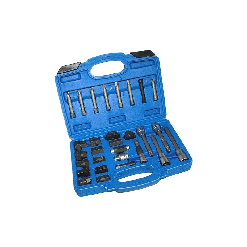 1 x M10 Bit-Stecknuss: 120 mm (L.) – 1 x M10 Bit-Stecknuss: 140 mm (L.) – 1 x M10 Bit, 14 mm Sechskant: 63 mm (L.) – 1 x 3/8″ Dr. M10 Bit-Stecknuss mit 31T: 90 mm (L.) – 1 x 8 mm Sechskant-Bit-Stecknuss: 120 mm (L.) – 1 x T50 TX-Star Bit-Stecknuss: 120 mm (L.) – 2 x 75 mm (L.) Bit: M8 -M10 – 2 x 75 mm (L.) TX-Stern-Bit: T40-T50 – 2 x 75 mm (L.) Sechskant-Bit: 8–10 mm – 2 x 10 mm Sechskant. Antrieb x H10-Bit: 50 mm (L.), 70 mm (L.) – 1 x 33T Lichtmaschinenmutter – 15 mm Sechskant. Spitze (L.) – 1 x 33T Lichtmaschinenmutter – 15 mm Sechskant. Spitze (S.) – 1 x 33T Lichtmaschinenmutter – 17 mm Sechskant. Spitze – 1 x 33T Lichtmaschinenmutter – 22 mm Sechskant. Spitze – 1 x 17 mm Sechskant-Lichtmaschinenmutter – Innendurchmesser: 14 mm – 1 x 1/4″ Dr. 10 mm Sechskant. – 1 x 17 mm Sechskantmutter für Lichtmaschine – 1 x 22 mm Sechskantmutter für Lichtmaschine – 1 x 28 mm x 22 mm Sechskantmutter für Lichtmaschine – 1 x 28 mm x 21 mm Sechskantmutter für Lichtmaschine – 1 x 28 mm x 19 mm Sechskantmutter für Lichtmaschine – 1 x 17 mm x 19 mm Sechskantmutter für Lichtmaschine Schraube – 1 x 17 mm x 21 mm Sechskant-Lichtmaschinenmutter – 1 x 4-Punkt-Lichtmaschinenmutter mit 17 mm Sechskant. Tipp – 1 x 3-Punkt-Lichtmaschinenmutter mit 38-mm-Sechskant. Spitze – 1 x 1/2″ Dr. x 10 mm Sechskant. Bithalter